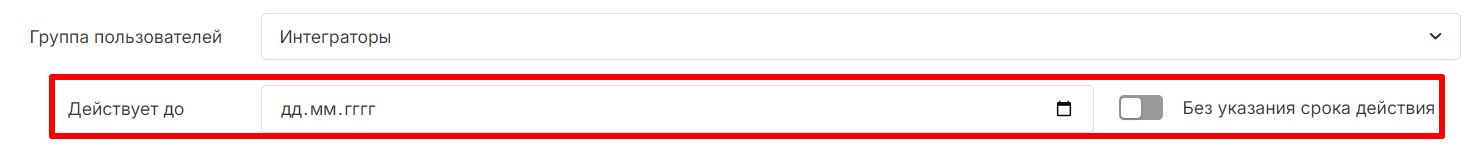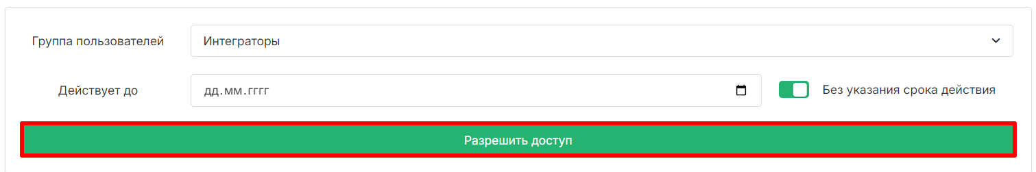 5. Выбрать срок действия доступа или «Без указания срока действия».