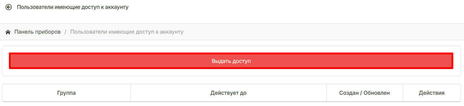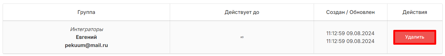 В таблице клиент может посмотреть и удалить предоставленные доступы.