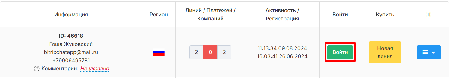 2. Нажмите Войти в строке с аккаунтом, который предоставил доступ.
