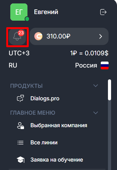 1. Перейдите в раздел «Уведомления», нажав на значок в левом меню.