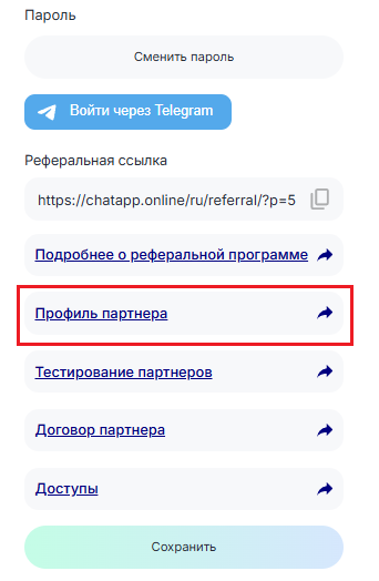 После заполнения заявки перейдите в Личном кабинете в Настройки профиля. Вам станет доступен профиль партнера, заполните его. Также понадобится разместить реферальную ссылку у себя на сайте. Затем напишите в техподдержку, чтобы получить статус партнера. Подробнее в статье Регистрация в качестве официального партнера.