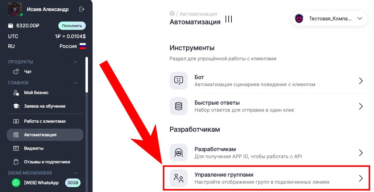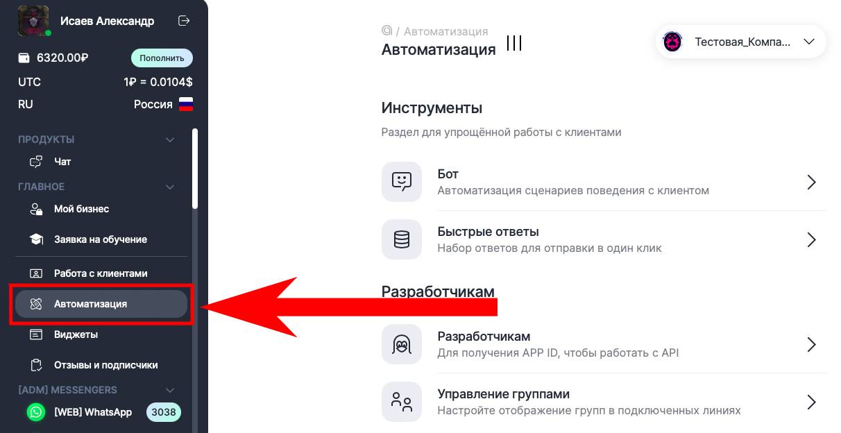 1. В личном кабинете ChatApp откройте пункт «Автоматизация».