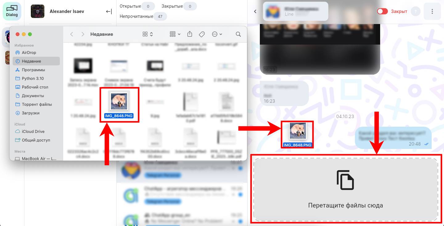 Второй способ отправки изображений, видео и файлов, Drag&Drop, крайне прост в применении.