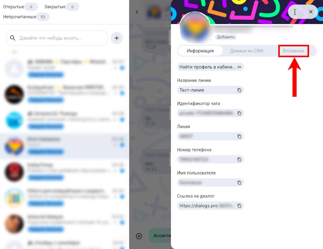 4. Во вкладке отобразятся последние вложения из данного диалога;