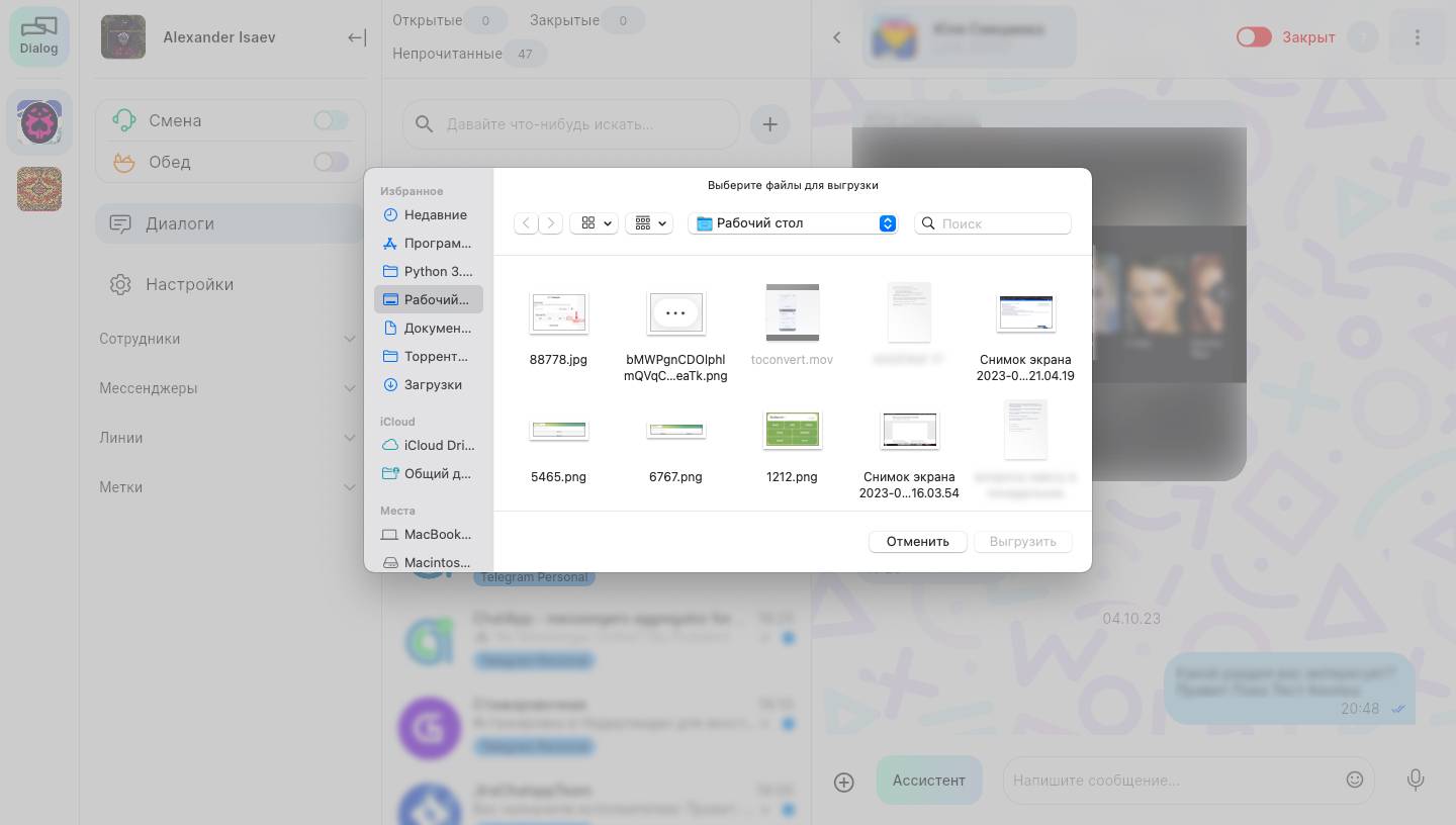 Отправка файлов в ChatApp Dialog