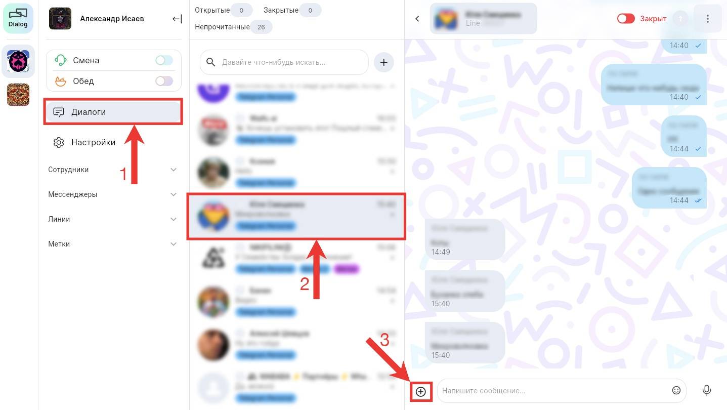 Из единого окна мессенджеров можно отправлять файлы. Это можно сделать одним из трех способов: