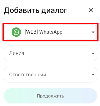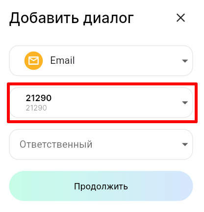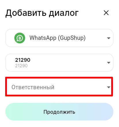 5. В поле «Ответственный» выберите сотрудника, к которому будет прикреплен диалог с