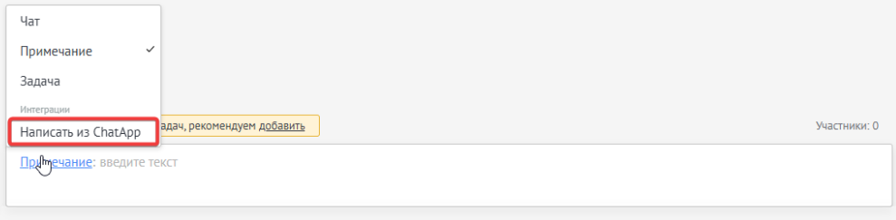 1. В окне отправки сообщения нажмите «Примечания» — «Написать из ChatApp».