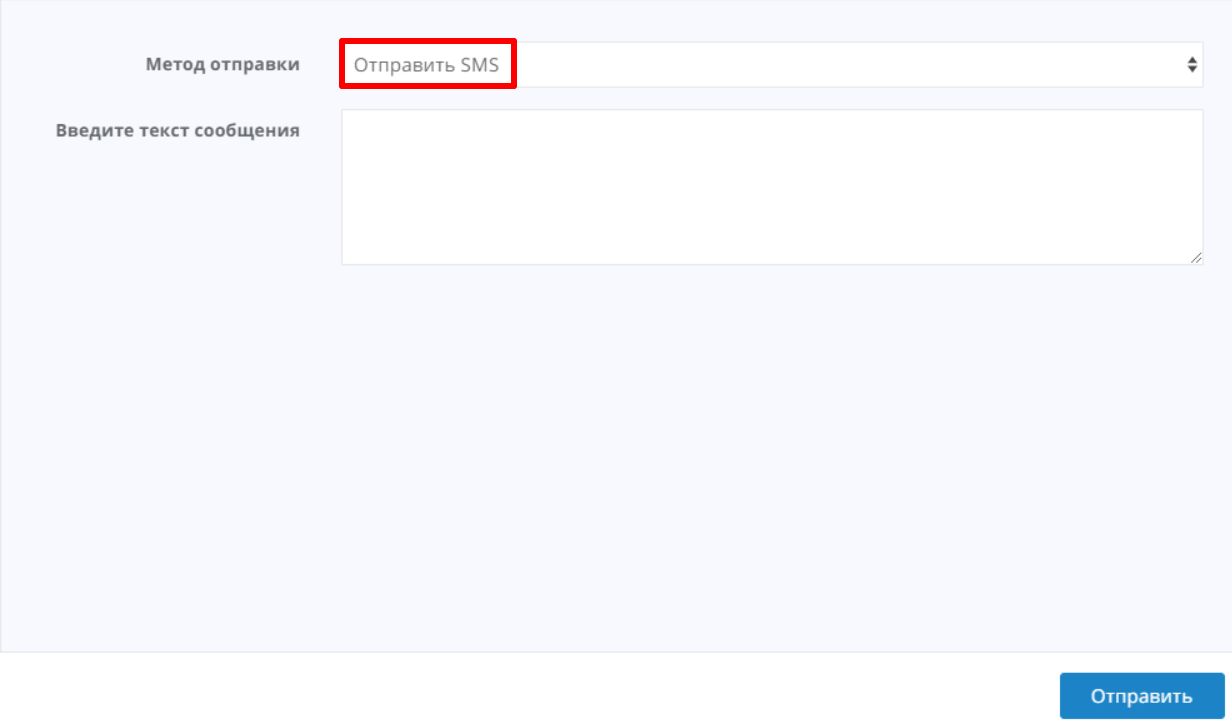 4. В поле «Метод отправки» выберите «Отправить SMS» — сообщение отправится в