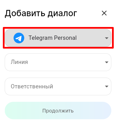 3. В поле «Мессенджеры» выберите Telegram Personal.