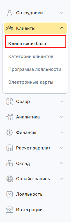 2. Перейдите во вкладку «Клиенты» в левом боковом меню и выберите «Клиентская