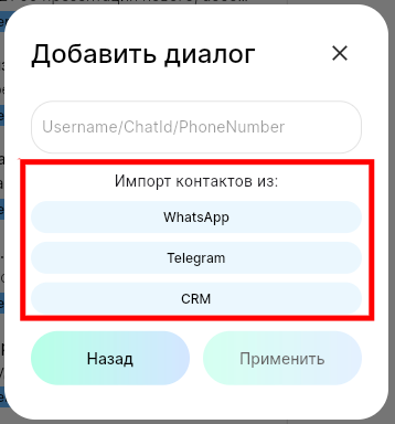 4. Выберите канал связи, из которого хотите импортировать контакт — Whatsapp, Telegram