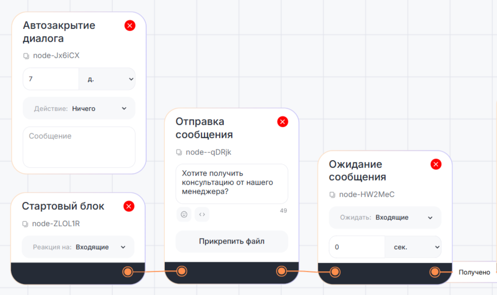 Если ответ не получен в течение указанного времени, в результатах блока фиксируется ошибка, после чего сценарий продолжает выполнен.