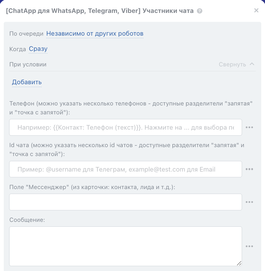 Шаг 4. Выберите робота [ChatApp для WhatsApp, Telegram, Viber] — «Участники чата».