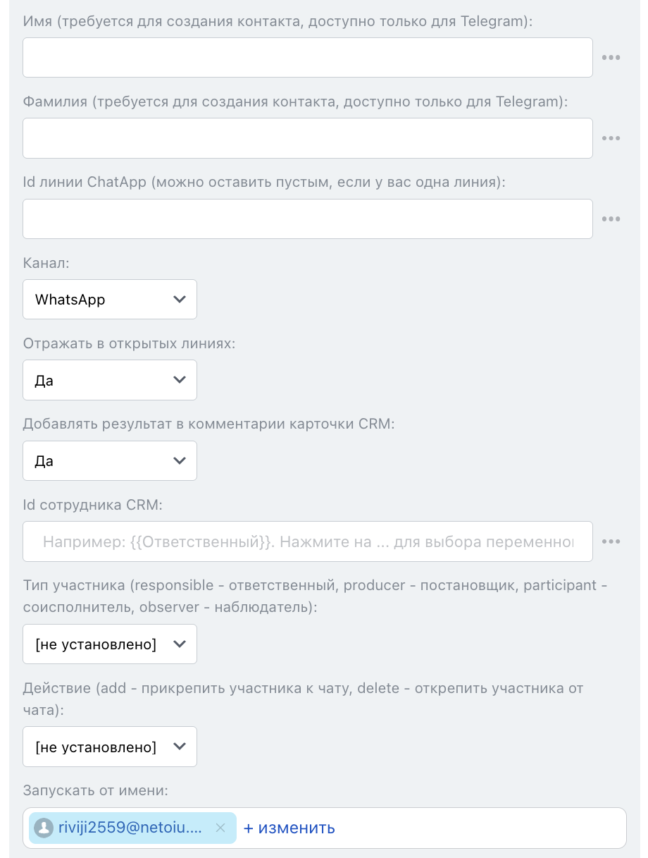 Роль сотрудника в чате указывается в поле «Тип участника».