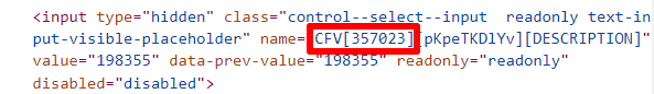 - В окне отобразится код поля. Id находится в квадратных скобках после «CFV».