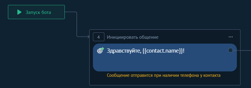 Например, чтобы бот обращался к клиенту по имени, нужно вставить в текст переменную {{contact.name}}. Имя будет получено из карточки клиента.