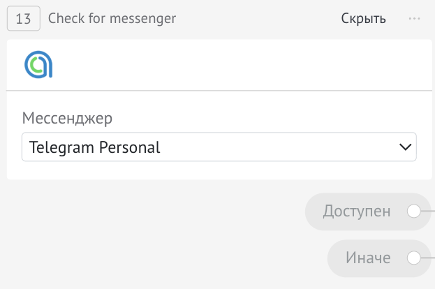«Доступен» — номер найден в мессенджере → здесь можно поставить блок отправки сообщения по этому каналу.