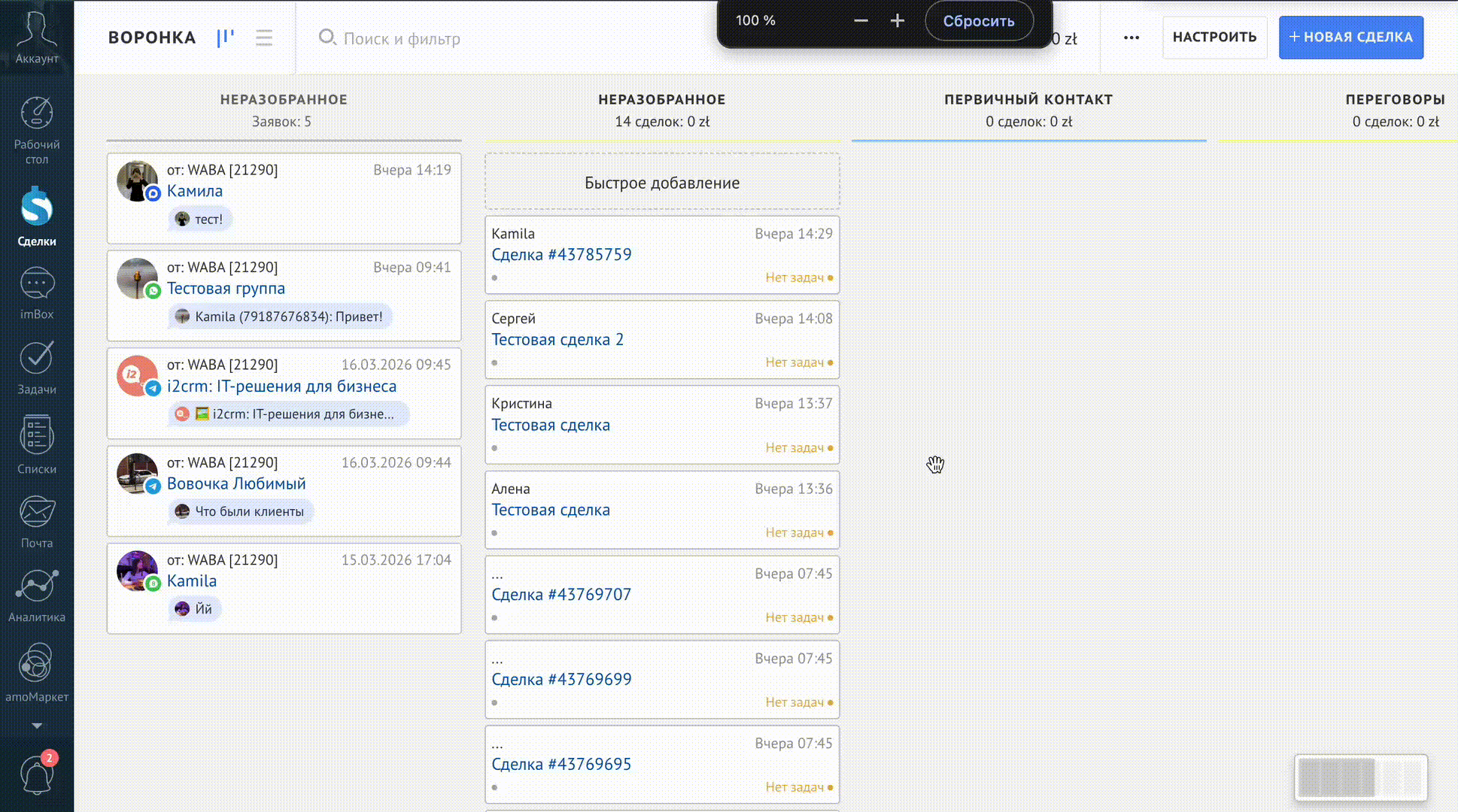 «Контакт с группой» — отправка в групповой чат, если есть в сделке групповой чат;