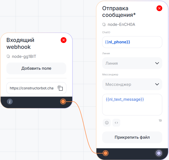 Дальнейшая логика обработки (назначение меток, изменение стадии сделки в CRM, запуск дополнительных сценариев) настраивается в Конструкторе ботов в соответствии с бизнес-процессом.