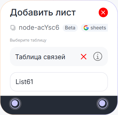 2. В поле «Лист» выберите лист из списка или укажите переменную. Название должно точно совпадать с названием листа в Google Sheets;