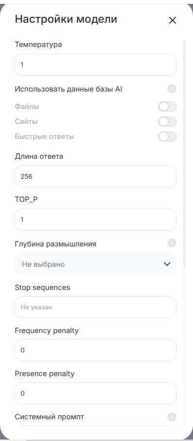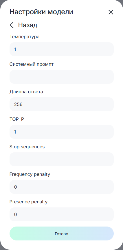 Настройки модели — настройка модели, которая будет генерирвоать ответ.