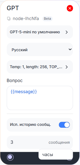 Использовать историю сообщений — Позволяет учитывать предыдущие сообщения.