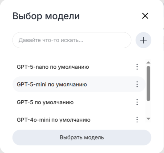 - Выберите модель OpenAI. По умолчанию используется модель GPT5-mini. Рекомендуется оставить эту модель.