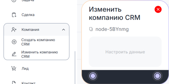 Блок Изменить компанию CRM Конструктора ботов