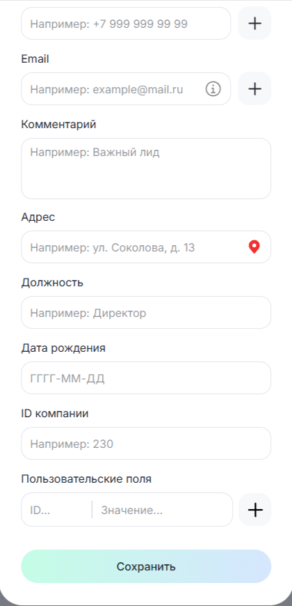 Заполненные поля будут обновлять значения в CRM-системе.