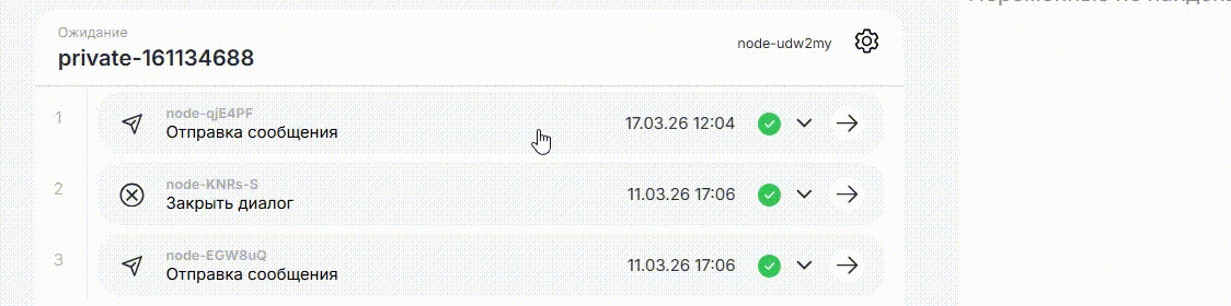Переменные Значения переменных в текущем чате на момент выполнения. Можно раскрыть историю изменений переменной, чтобы отследить последовательность работы с переменной в чате.
