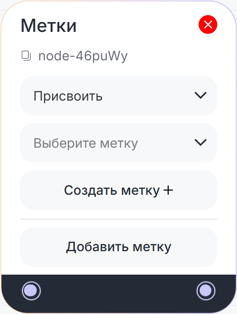 Для работы блока необходимо заранее создать метки и их категории в Scenario Dialogs. Подробнее см. статью «Установка меток».