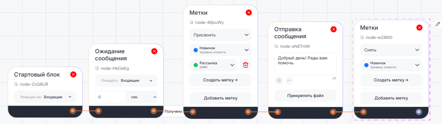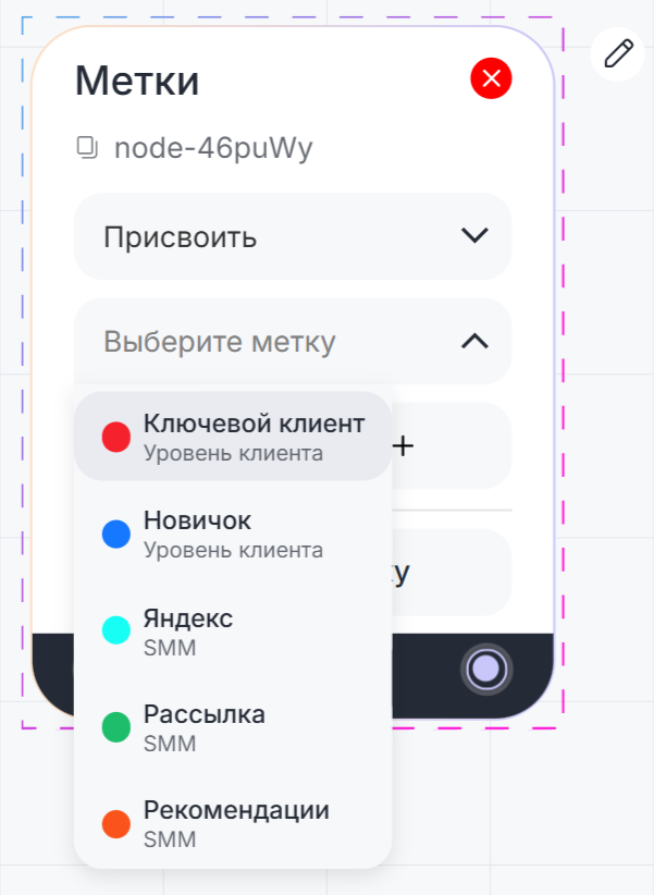 Блок «Метки» можно использовать в любом сценарии взаимодействия с клиентом.
