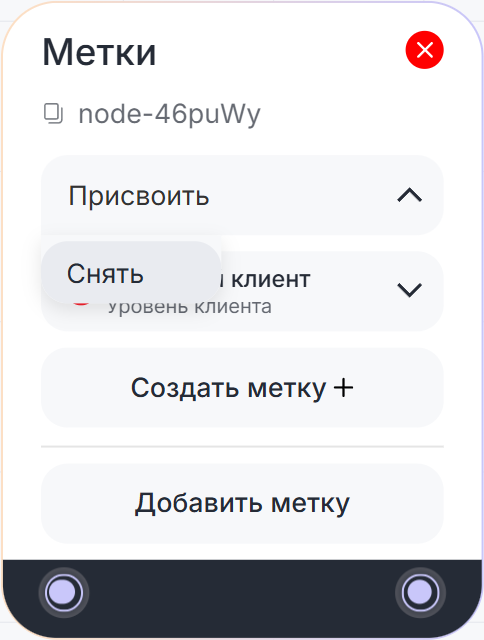 Блок «Метки» используется для автоматического присвоения или снятия меток с диалогов.