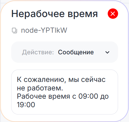 3. В поле «Сообщение» введите текст, который получит клиент, если напишет в нерабочее время.