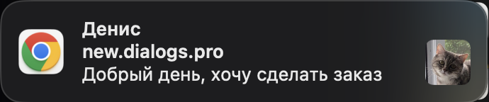 Уведомления о входящих сообщениях позволяют не пропустить важную информацию. Уведомления отображаются в открытой вкладке Dialogs. Если в браузере открыта другая вкладка или браузер свернут, при поступлении сообщения будет воспроизведен звук уведомления и вы получите браузерное push-уведомление.