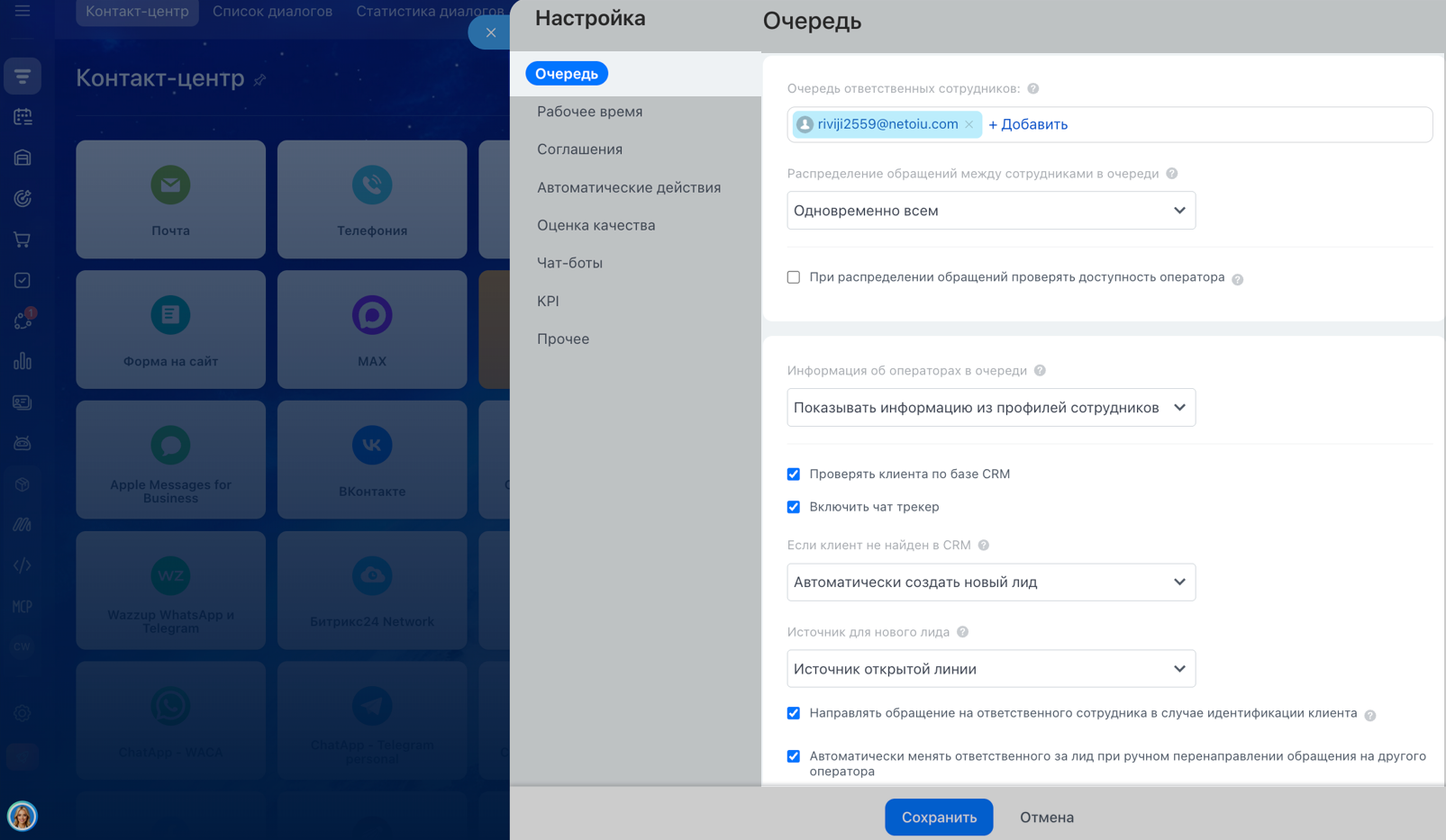 Как настроите раздел «Очередь», нажмите Сохранить.