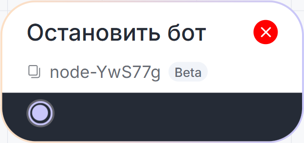 Блок «Остановить бот» используется для завершения выполнения сценария на любом этапе. После выполнения блока сценарий прекращает работу, и бот перестает автоматически отвечать в диалоге.