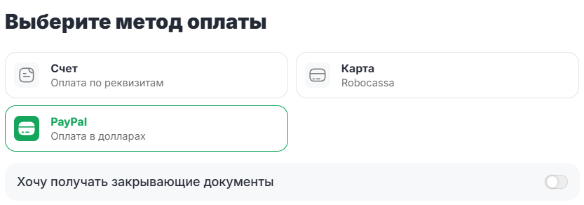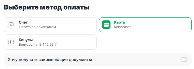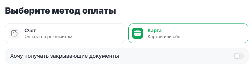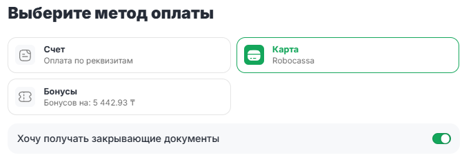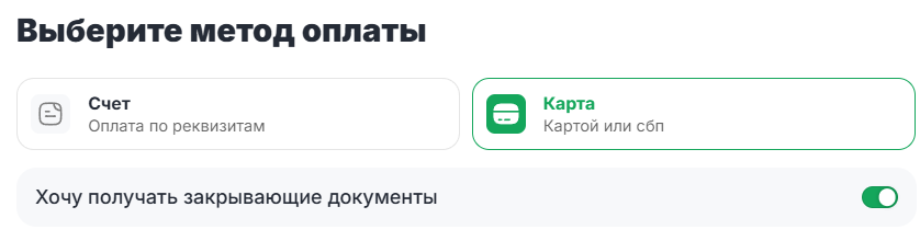 при оплате картой, если выбран пункт при формировании оплаты: «Хочу получать закрывающие документы».