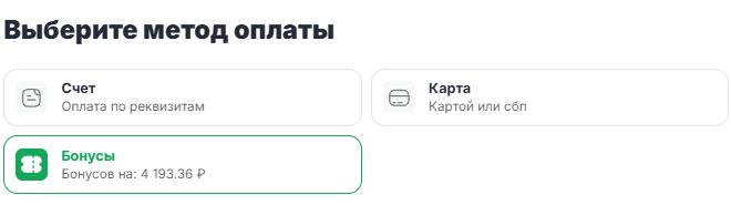 - Нажмите на кнопку «Оплатить» — система спишет средства с вашего Бонусного счёта.