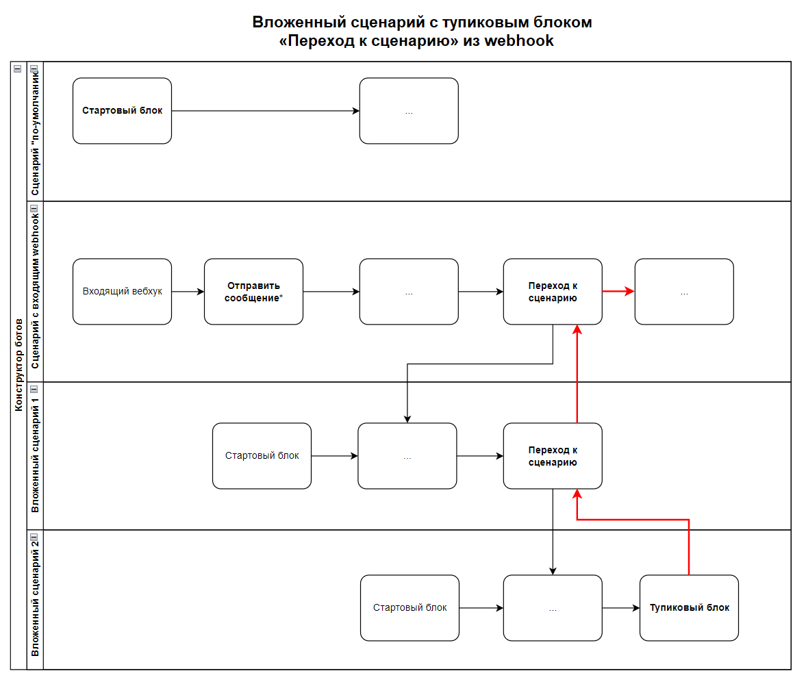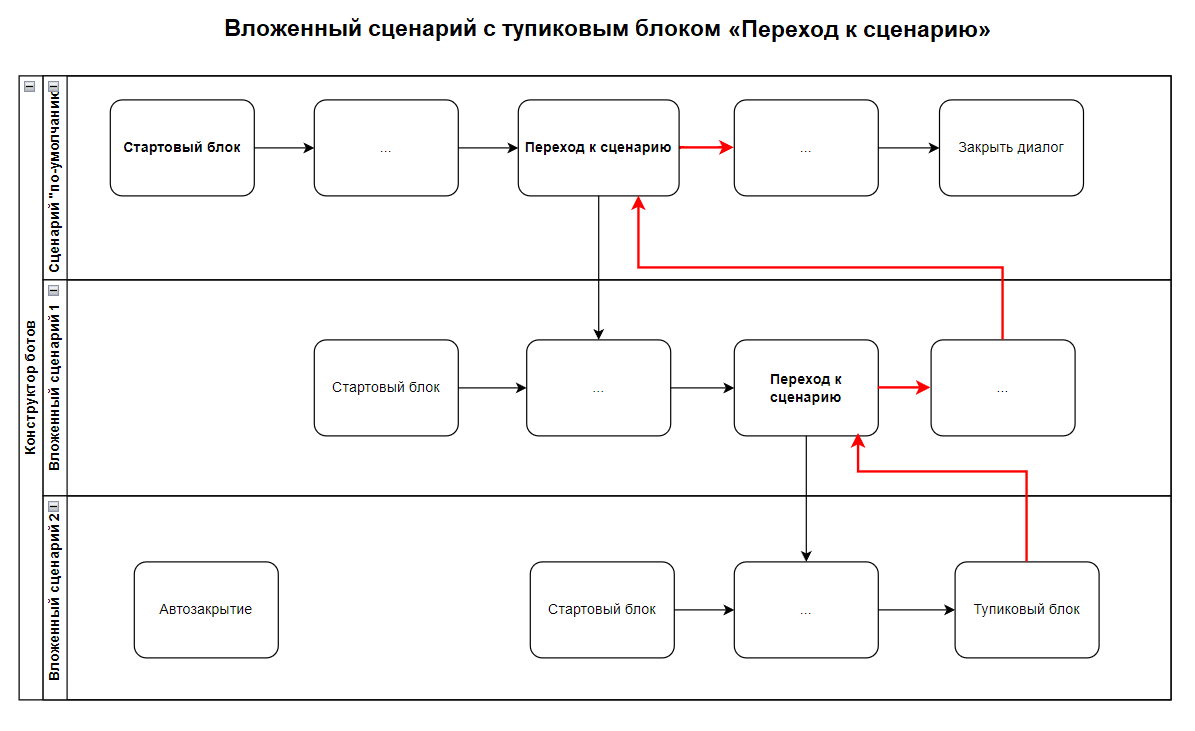 • выполняется возврат к блоку «Переход к сценарию» предыдущего сценария