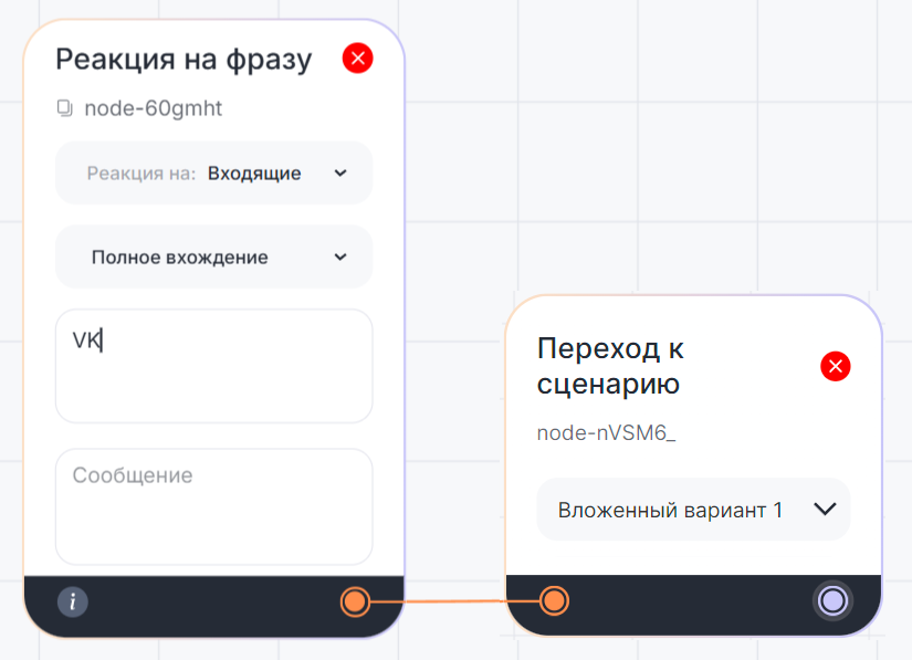 Блок «Переход к сценарию» используется для перехода к другому сценарию внутри одного бота.