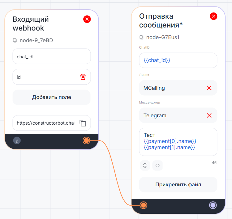 • Блок «Входящий webhook» используется совместно с блоком «Отправить сообщение*»