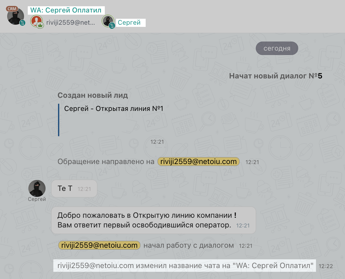 Робот меняет название чата в Открытой линии по заданному шаблону.