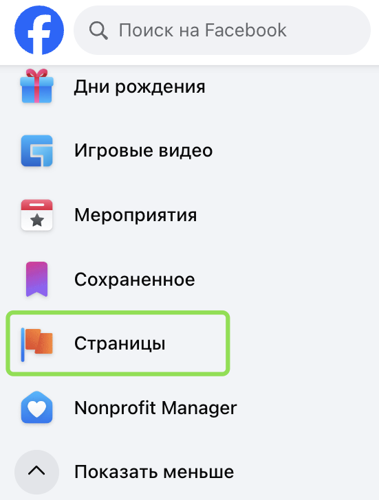 1. Перейдите в профиль Facebook → в раздел «Страницы» на левой панели → выберите нужную бизнес-страницу.