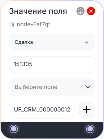 - Блок «Значение поля» получает из CRM-системы номер заказа.