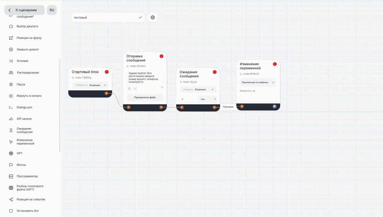 Результаты работы блока можно использовать в других блоках сценария.Через меню переменных доступны:
