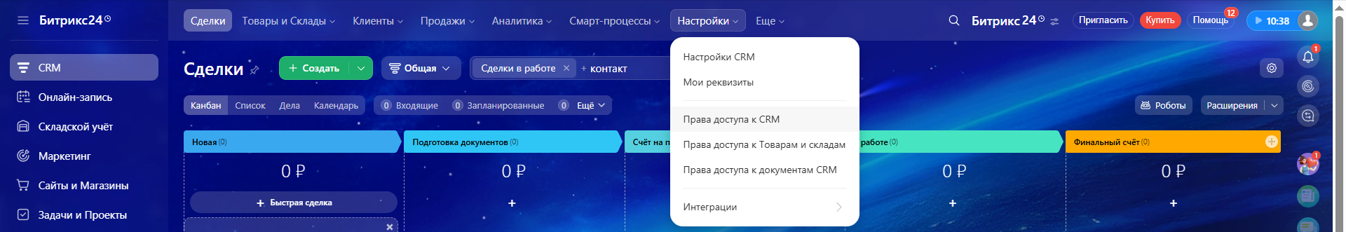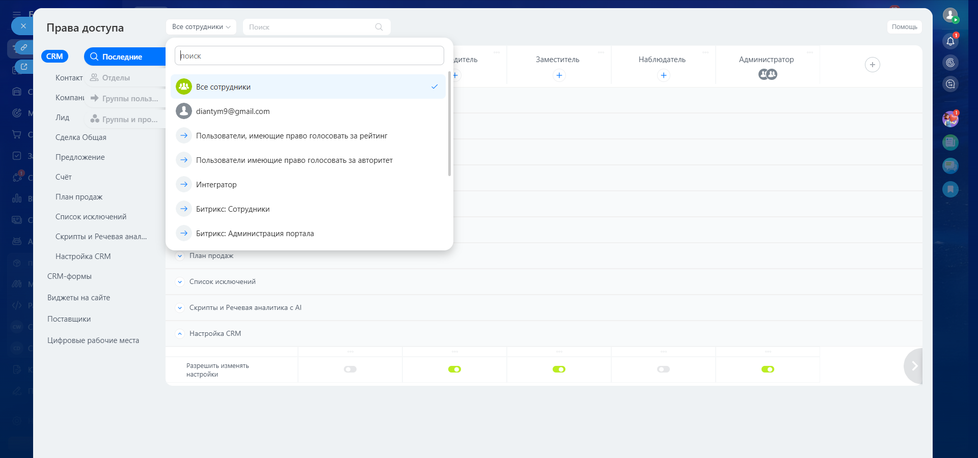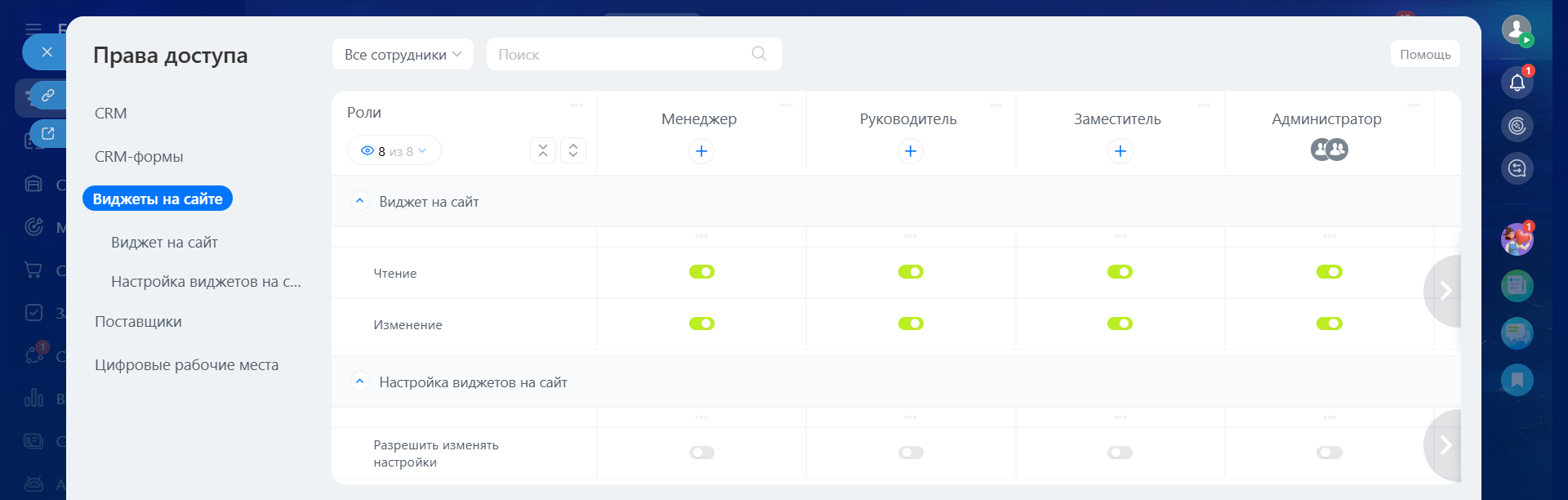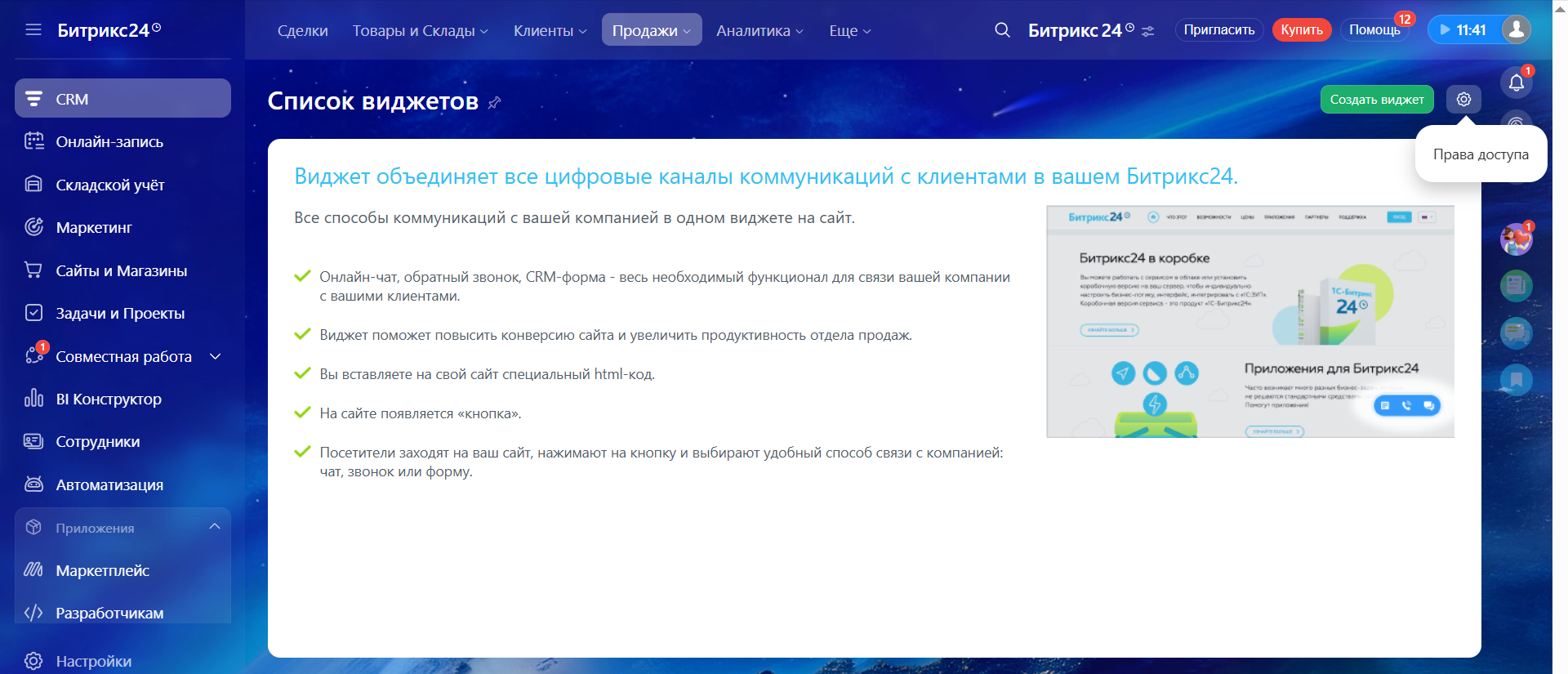 Подробнее о правах доступа к виджетам читайте в справке Битрикс24.