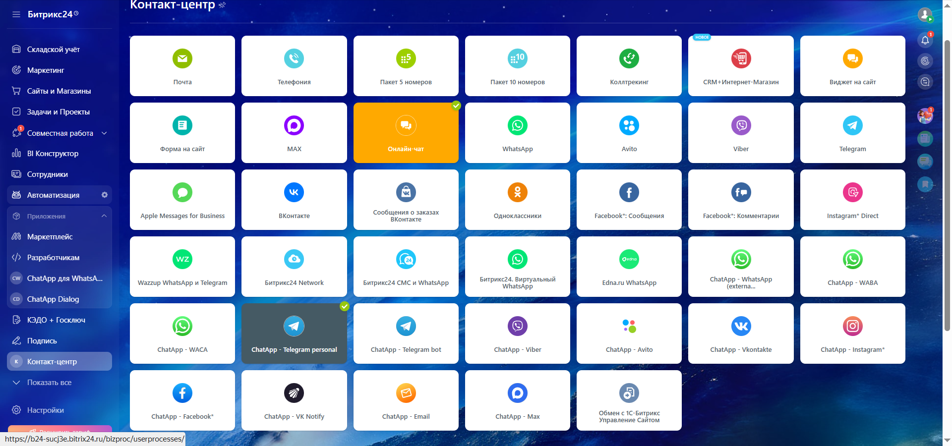 1. В Битрикс24 в меню слева выберите раздел «Контакт центр».