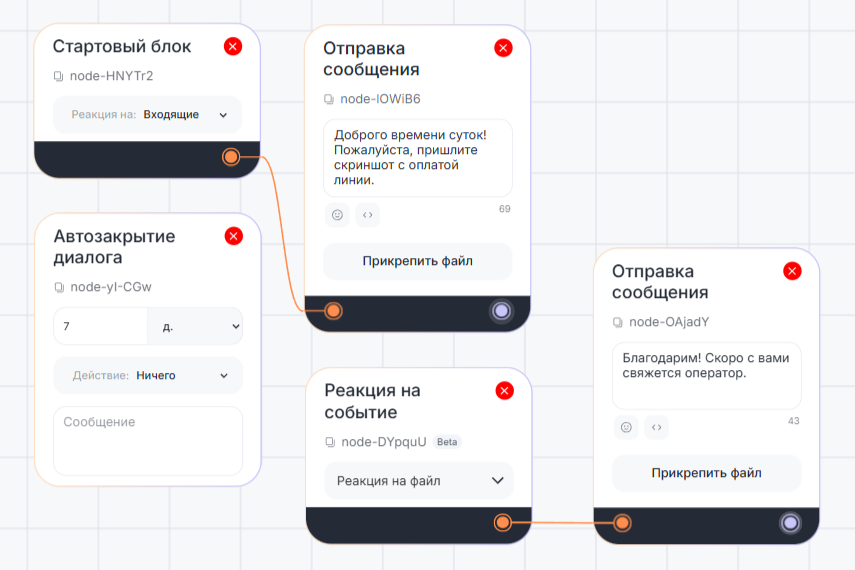3. Блок запускает следующий шаг сценария — например, «Отправка сообщения».